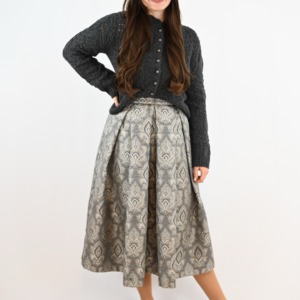 Dieser elegante Trachtenrock aus hochwertigem Brokatstoff besticht durch sein aufwändiges Muster in stilvollen Grau- u. Beigetönen. Der ausgestellte Schnitt sorgt für eine feminine und schmeichelhafte Silhouette, während die luxuriöse Verarbeitung die Exklusivität des Designs unterstreicht. Ein vielseitiges Kleidungsstück, das Tradition und Moderne verbindet – ideal kombinierbar mit Miedern, Blusen oder Strickjacken für festliche oder alltägliche Anlässe.